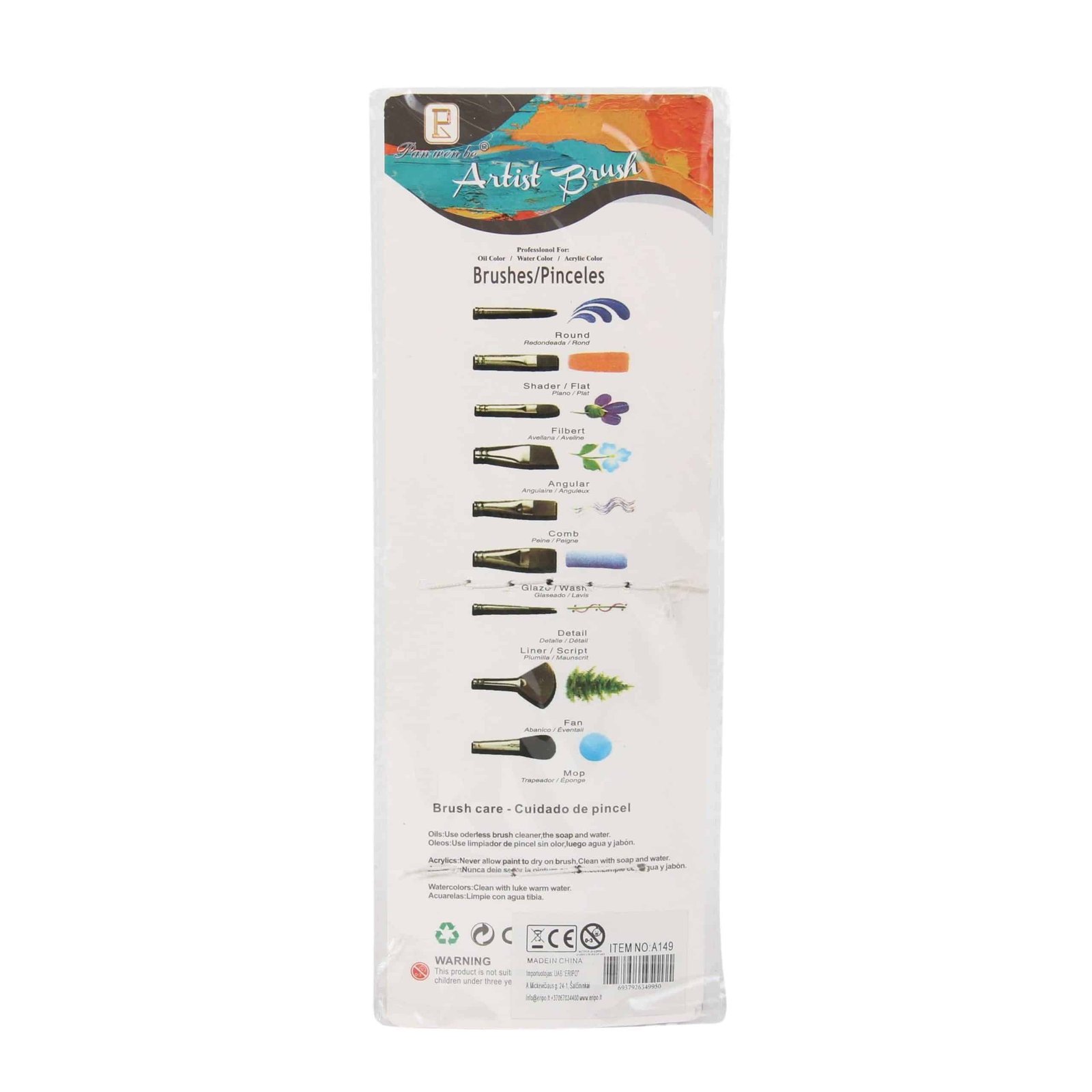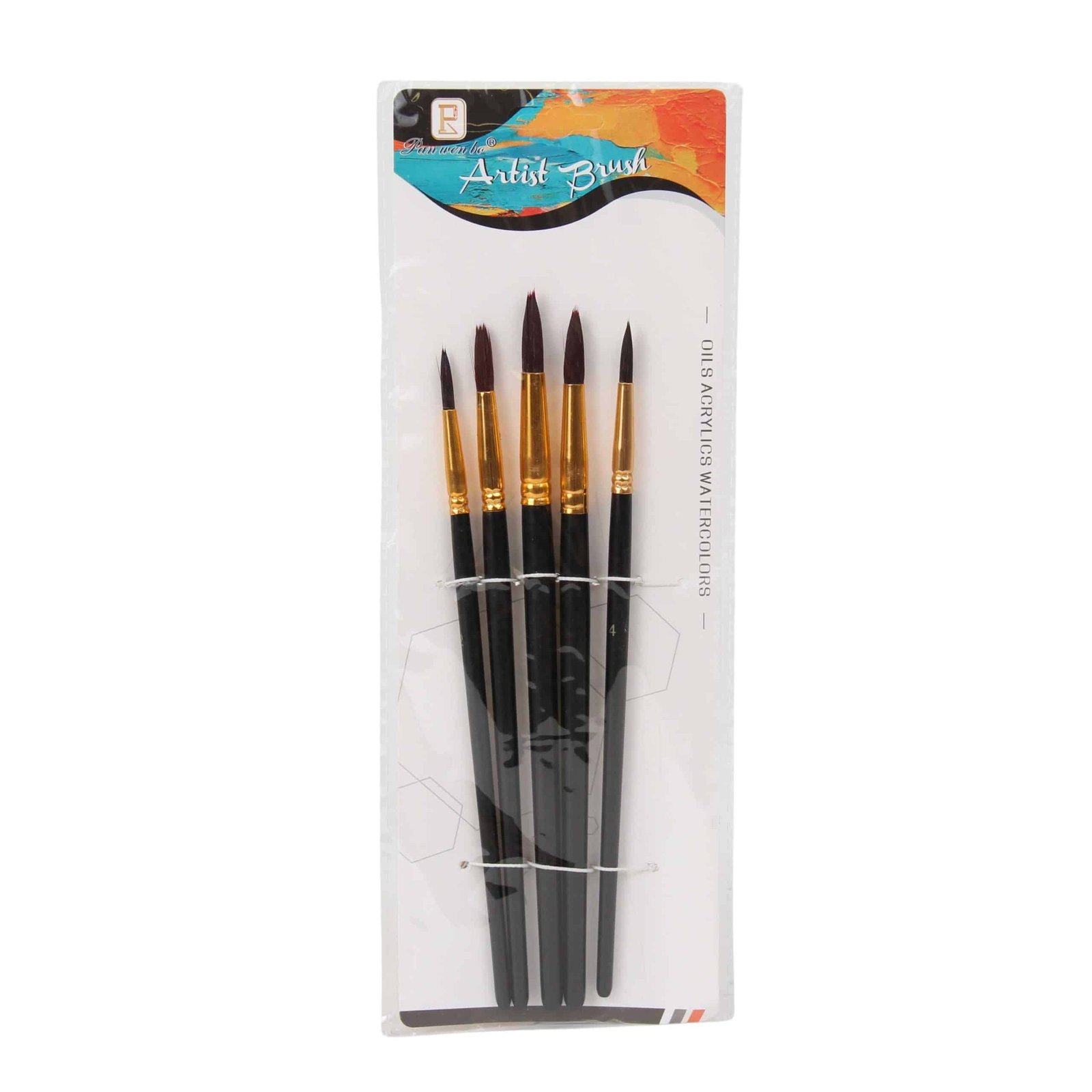Teptukų rinkinys 5vnt. Panwenbo. Tinka akvarelei, aliejiniams ir akrininiams dažams. 5 dydžių teptukai dailei. Po dašymo išplauti muilu ir vandeniu. Piešiant akriliniais dažai, teptuko nešlapinti.