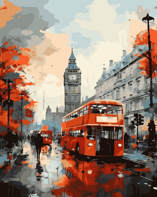 TPS “Raudonas dviaukštis autobusas Londono lietuje”